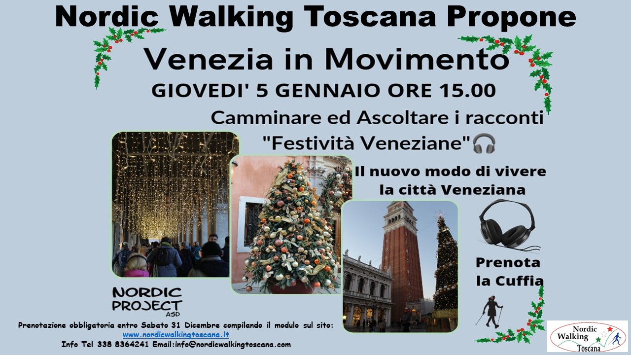 Nordic Walking Toscana propone un tour a Venezia con guida turistica. Una camminata tra Calli e Callette ascoltando racconti e aneddoti sulle Festività Veneziane