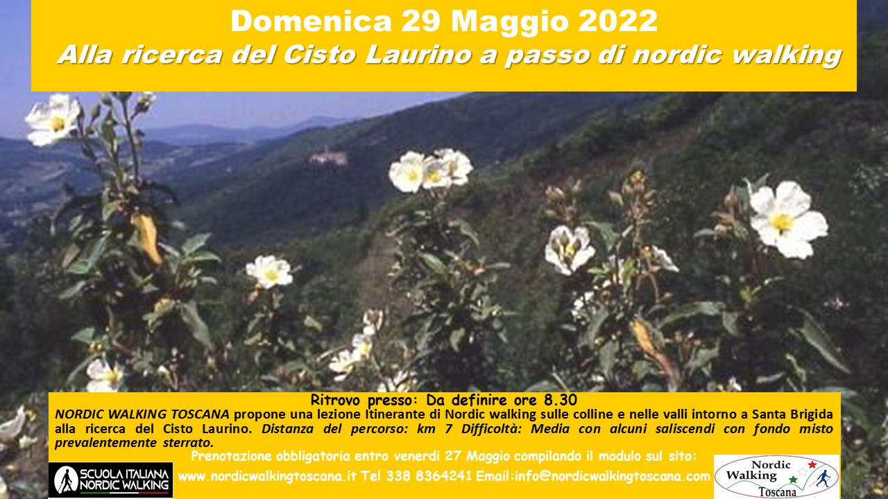 Domenica 29 maggio andiamo alla ricerca del cisto laurino e delle sue spettacolari fioriture a passo di nordic walking . IL cisto laurino è una pianta endemica esistente solo sui poggi attorno a Santa Brigida: Il percorso é prevalentemente sterrato con diversi saliscendi