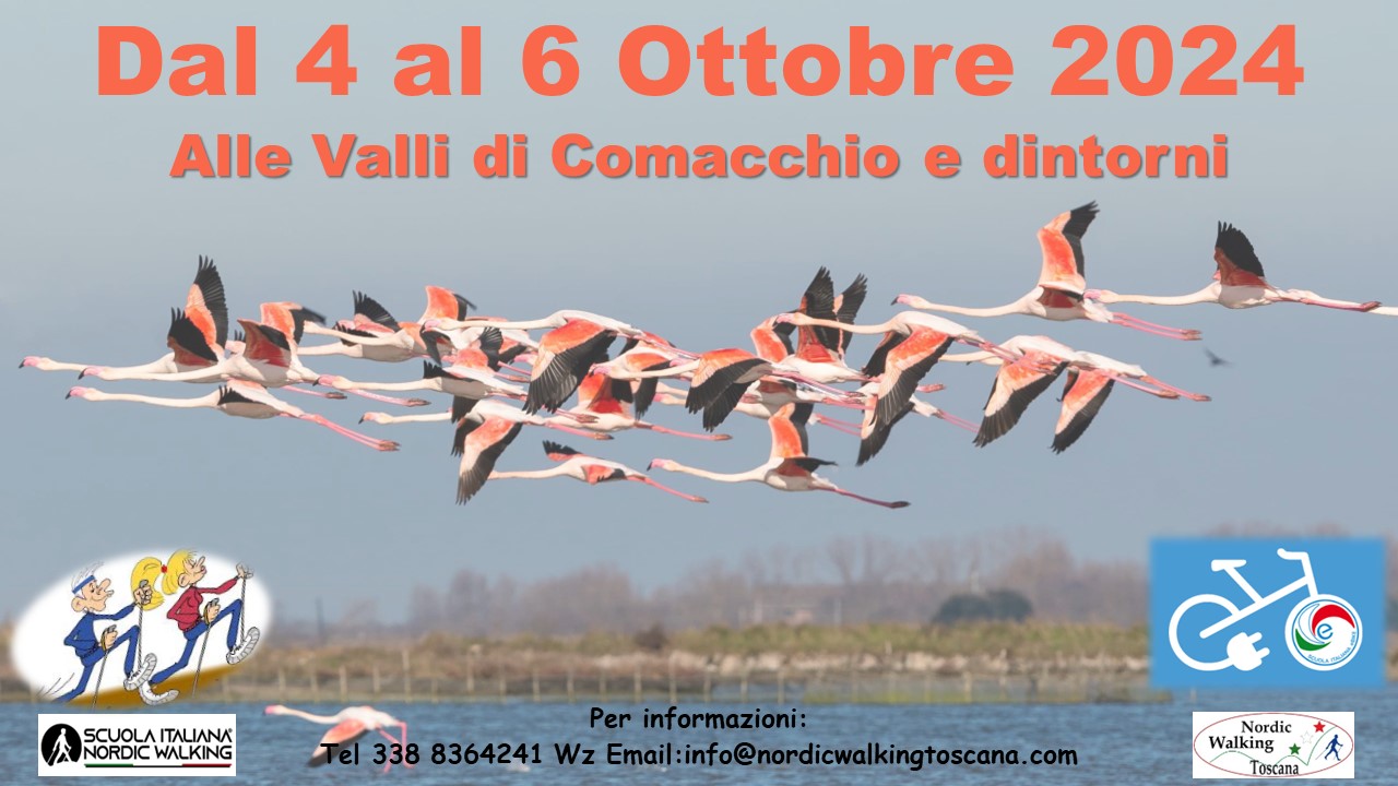 Dal 4 al 6 Ottobre 2024 Nordic Walching Toscana propone: Le Valli di Comacchio in E-Bike ed a passo di Nordic Walking.