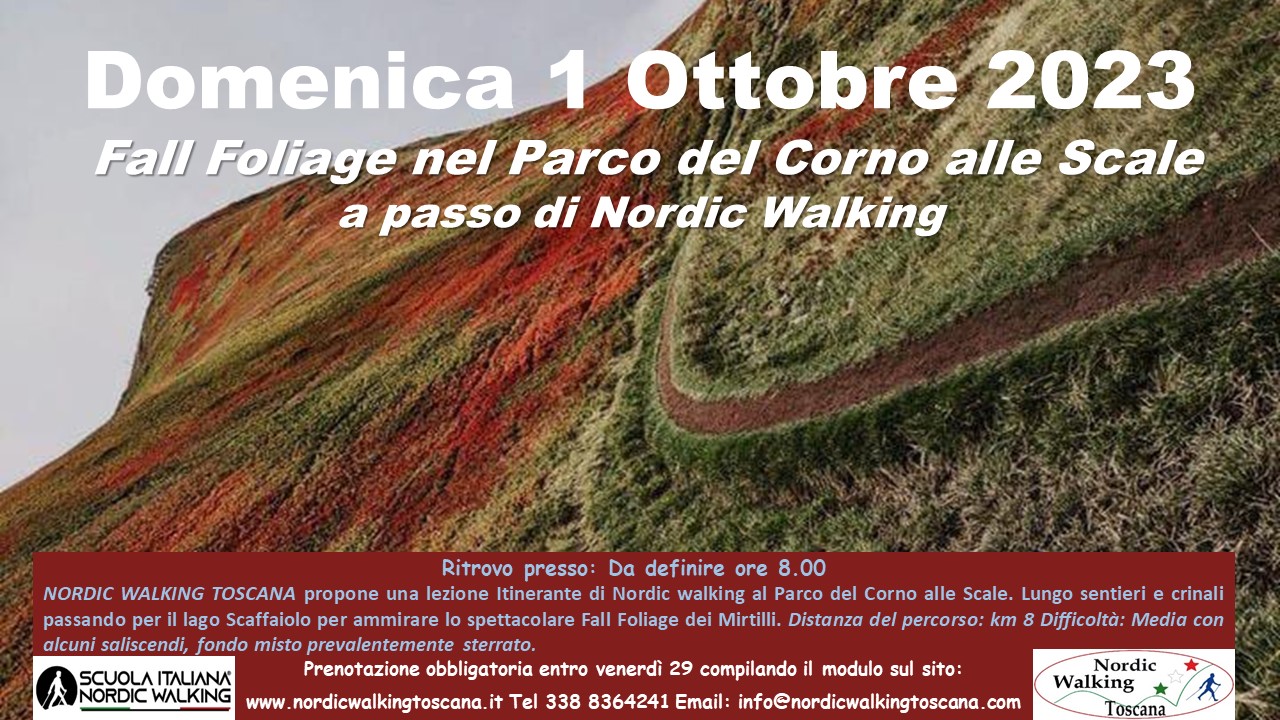 NORDIC WALKING TOSCANA propone Domenica 1 Ottobre 2023 una lezione Itinerante a passo di Nordic Walking al Parco Regionale del Corno alle Scale. Lungo sentieri e crinali per ammirare lo spettacolare fenomeno dei colori autunnali delle foglie dei Mirtilli, passando dal lago Scaffaiolo. Distanza del percorso: km 8 Difficoltà: Media con alcuni saliscendi fondo misto prevalentemente Sterrato. Prenotazione obbligatoria entro Venerdì 29 compilando il modulo sottostante.