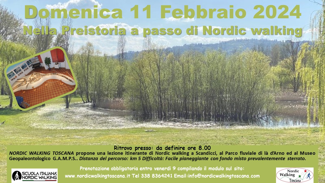 NORDIC WALKING TOSCANA propone Domenica 11 Febbraio 2024 una lezione Itinerante a Scandicci, al Parco Fluviale di là d’Arno ed al Museo Geopaleontologico G.A.M.P.S. a passo di Nordic Walking. Percorso 6 km. Difficoltà: Facile pianeggiante, fondo prevalentemente Sterrato. Prenotazione obbligatoria entro Venerdì 9 compilando il modulo sottostante, indicando nel campo Evento scelto: ” G.a.m.p.s. ”
