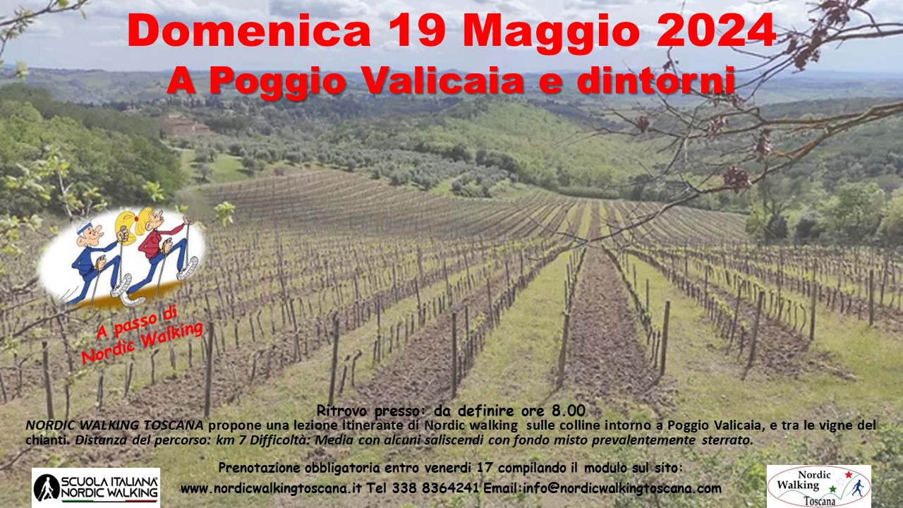 NORDIC WALKING TOSCANA propone Domenica 19 Maggio una lezione Itinerante sulle colline di Poggio Valicaia, tra le vigne del Chianti ed al Parco Museo di Poggio Valicaia. Distanza del percorso: km 7 Difficoltà: Media con alcuni saliscendi fondo misto prevalentemente sterrato. Prenotazione obbligatoria entro Venerdì 17 compilando il modulo sottostante in dicando nel campo Titolo evento ” Poggio Valicaia”.
