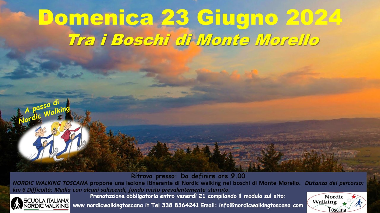 NORDIC WALKING TOSCANA propone Domenica 23 Giugno 2024 una lezione Itinerante nei boschi di Monte Morello a passo di Nordic walking. Distanza del percorso: km 7 Difficoltà: Media con alcuni saliscendi fondo misto prevalentemente Sterrato. Prenotazione obbligatoria entro Venerdì 21 compilando il modulo sottostante.