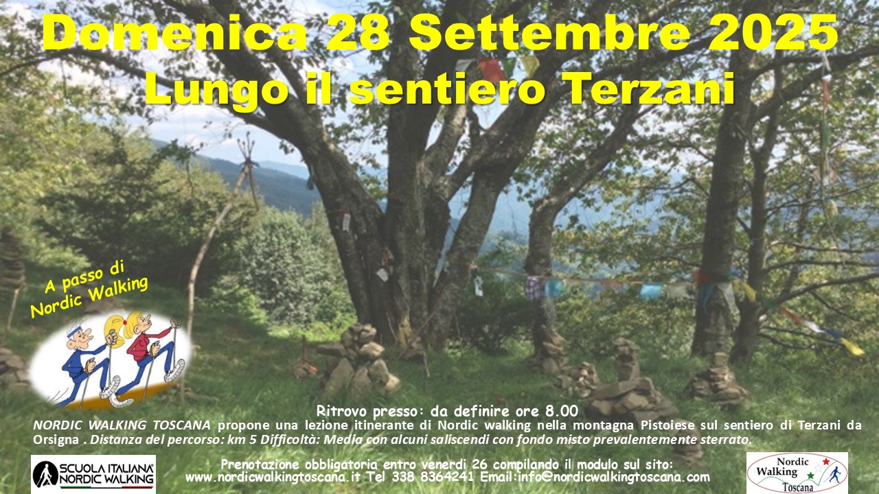 NORDIC WALKING TOSCANA propone Domenica 28 Settembre 2025 una lezione Itinerante nei Boschi della montagna Pistoiese. Da Orsigna lungo il Sentiero Terzani, caro allo Scrittore, fino all’albero con gli occhi, a passo di Nordic walking. Distanza del percorso: km 5 Difficoltà: medio con alcuni saliscendi fondo misto prevalentemente Sterrato. Prenotazione obbligatoria entro Venerdì 26 compilando il modulo sottostante. Indicando nel campo Evento scelto ” Sentiero Terzani ”