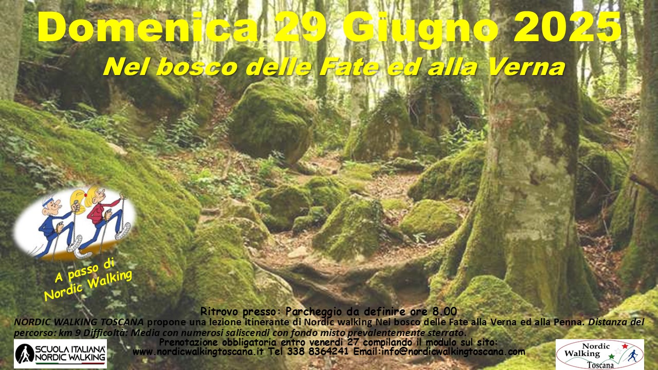 NORDIC WALKING TOSCANA propone Domenica 29 Giugno 2025 una lezione Itinerante nelle foreste della Verna, al Bosco delle Fate, alla Penna ed al Santuario a passo di Nordic Walking. Percorso 9 km. Difficoltà: Media, con numerosi saliscendi, fondo misto, prevalentemente Sterrato. Prenotazione obbligatoria entro Venerdì 27 compilando il modulo sottostante, indicando nel campo Evento scelto: ” Bosco delle Fate ”