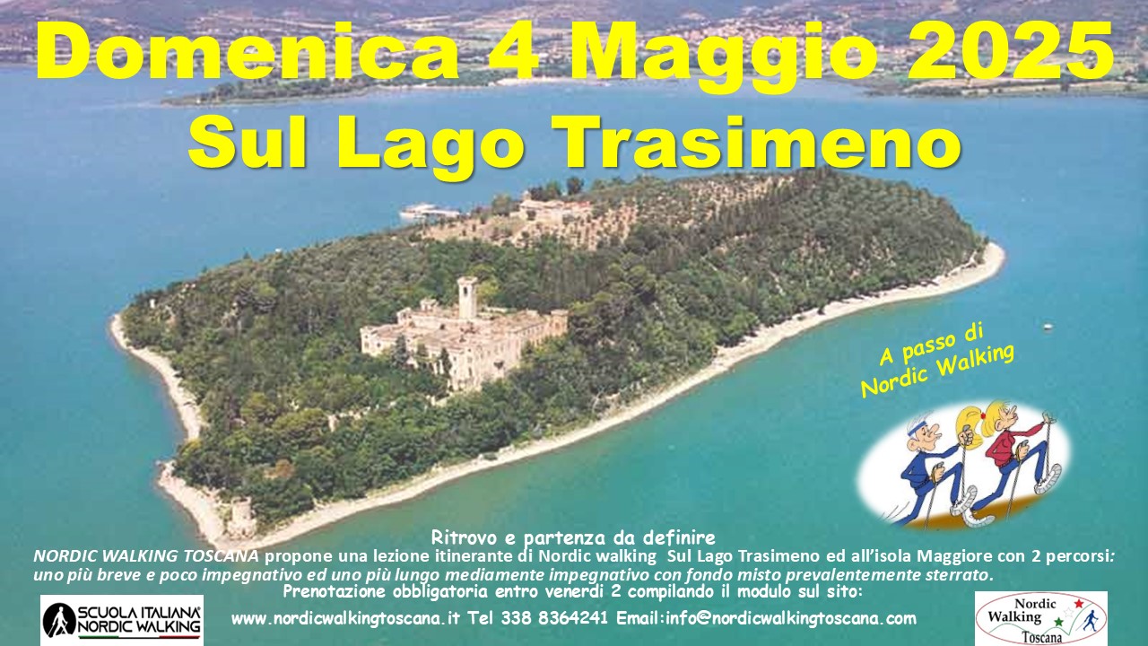 NORDIC WALKING TOSCANA propone Domenica 4 Maggio 2025 una lezione Itinerante al lago Trasimeno ed all’isola Maggiore. ci saranno 2 percorsi: Uno più corto e semplice con poco dislivello ed uno più lungo di media difficolta, fondo misto, prevalentemente Sterrato. Prenotazione obbligatoria entro Venerdì 2 compilando il modulo sottostante, indicando nel campo Evento scelto: ” Trasimeno ”