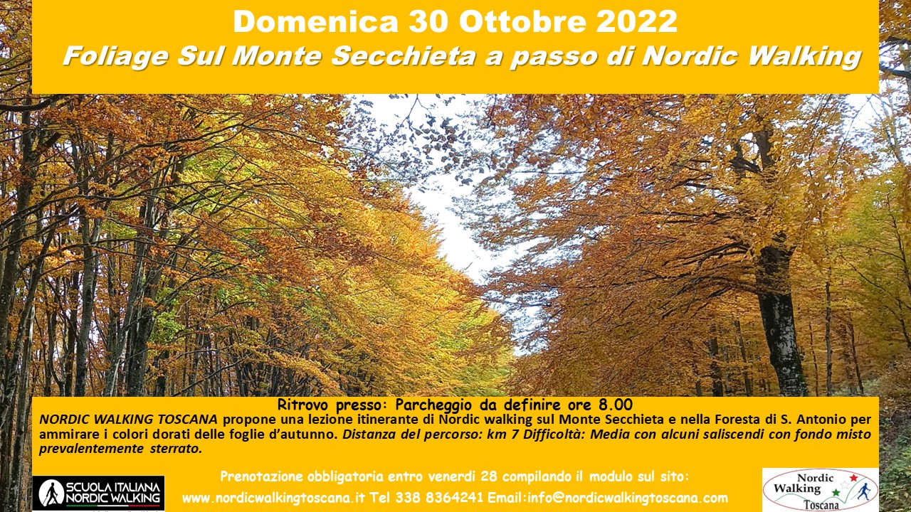 Domenica 30 ottobre andiamo a passo di nordic walking sul Monte Secchieta , dove ci aspettano gli spettacolari colori d’autunno degli alberi del Pratomagno. Partiremo dal Monte Secchieta per inoltraci nella foresta di Sant’Antonio e ammirare il fall foliage anche sulla Panoramica del Pratomagno. Il percorso é sterrato con diversi saliscendi. Per partecipare é necessario iscriversi entro venerdì 28 ottobre compilando il modulo sottostante indicando Foliage Secchieta.