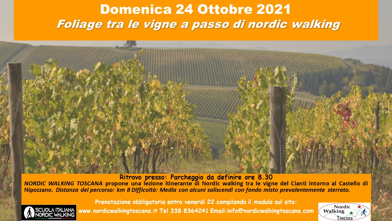 Domenica 24 ottobre torniamo tra i meravigliosi vigneti della tenuta del Castello di Nipozzano, sede del Challenge 2019, per camminare a passo di nordic walking ammirando le foglie colorate d’autunno. Percorso ad anello di km 8 con diversi saliscendi su sterrato. Per iscriversi necessario compilare il modulo sottostante specificando Nipozzano entro sabato 23 ottobre
