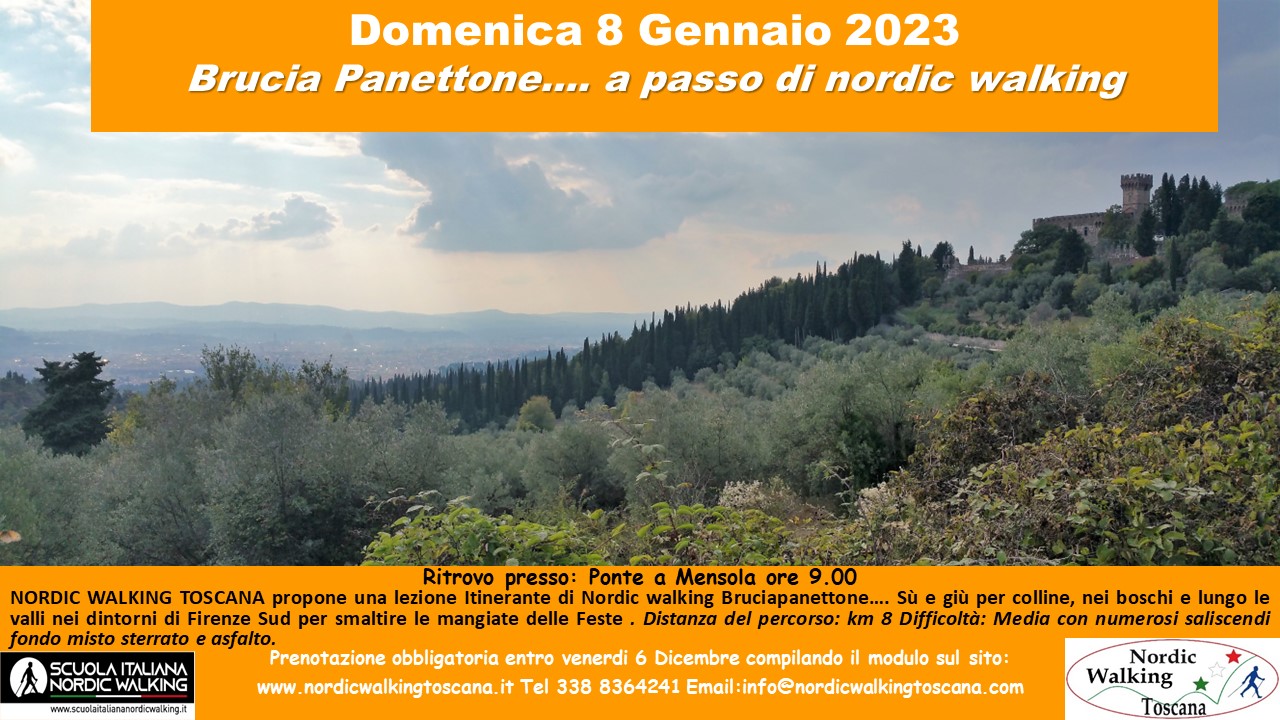 Nordic Walking Toscana propone una Lezione Itinerante brucia Panettone sulle colline, nei boschi e nelle valli intorno a Firenze Sud per smaltire le mangiate delle Feste…