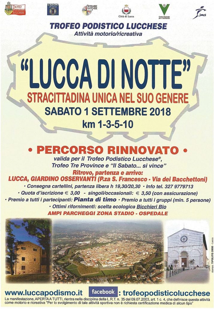 Manifestazione podistica in notturna sulle Mura e nel centro di Lucca. Per il terzo anno consecutivo partecipiamo a passo di nordic walking alla 5 e 10 km. Ritrovo a Lucca alle ore 19. Partenza ore