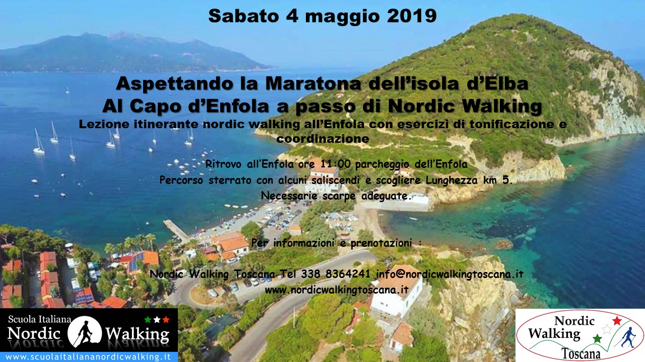 In occasione della Maratona dell’isola d’Elba, Nordic Walking Toscana organizza una lezione itinerante di nordic walking al Capo d’Enfola su un percorso sterrato ricco di punti di interesse. Gli appassionati di nordic walking potranno così praticare questo sport il giorno prima della manifestazione.