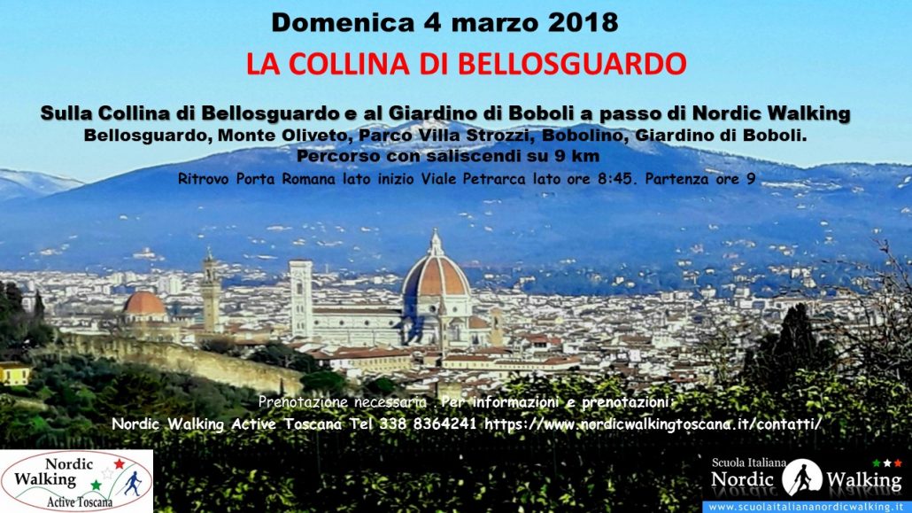Sulla collina di Bellosguardo e al giardino di Boboli a passo di nordic walking. Ritrovo ore 8:45 Porta Romana