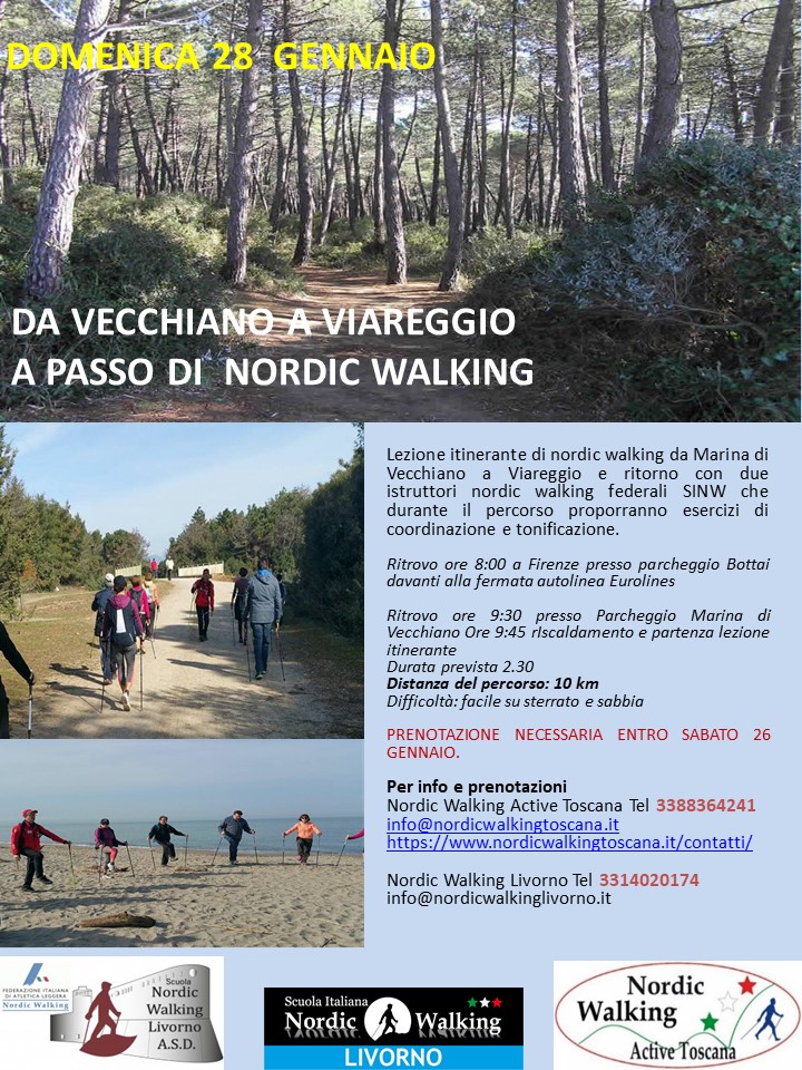 Nordic walking da Marina di Vecchiano a Viareggio sul lungomare.