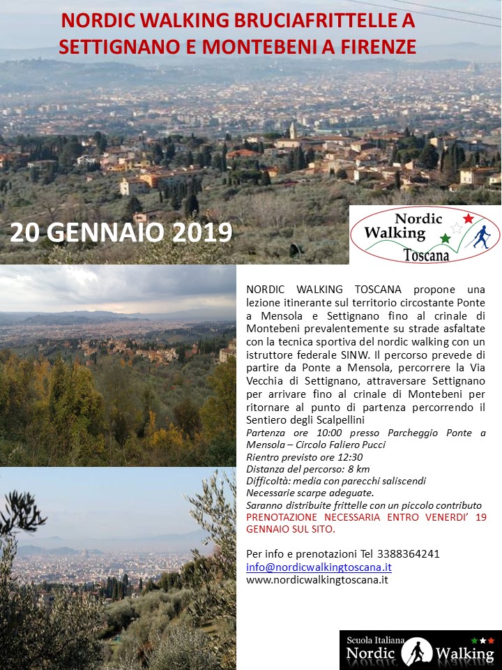 Festeggiamo l’inizio del carnevale con una lezione itinerante bruciafrittelle con partenza dal Circolo Faliero Pucci a Ponte a Mensola (Firenze) per percorrere la Via Vecchia di Settignano per arrivare a Settignano e salire fino al crinale di Montebeni percorrendo stradine di campagne da cui é possibile ammirare un panorama mozzafiato. Il ritrovo é previsto attraversando la via degli Scalpellini. Percorso ad anello di 8 km con diverse salite prevalentemente su asfalto. Prenotazione necessaria entro venerdì 19 gennaio compilando il modulo sottostante