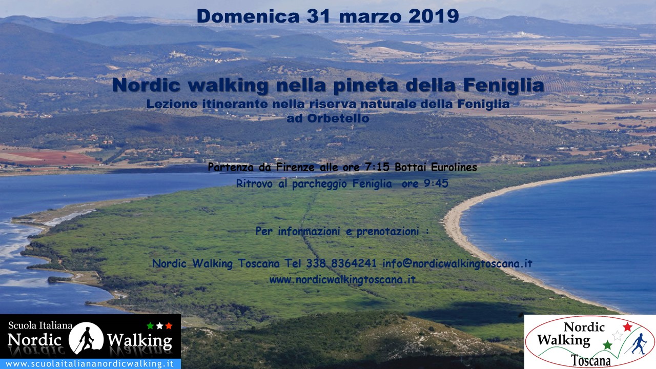 Lezione itinerante nordic walking nel bosco della Feniglia ad Orbetello. Percorso su sterrato di 13 km. Ritrovo per chi parte da Firenze alle ore 7:15 presso parcheggio Bottai Eurolines. Ritrovo al parcheggio Feniglia ad Orbetello alle ore 9:45