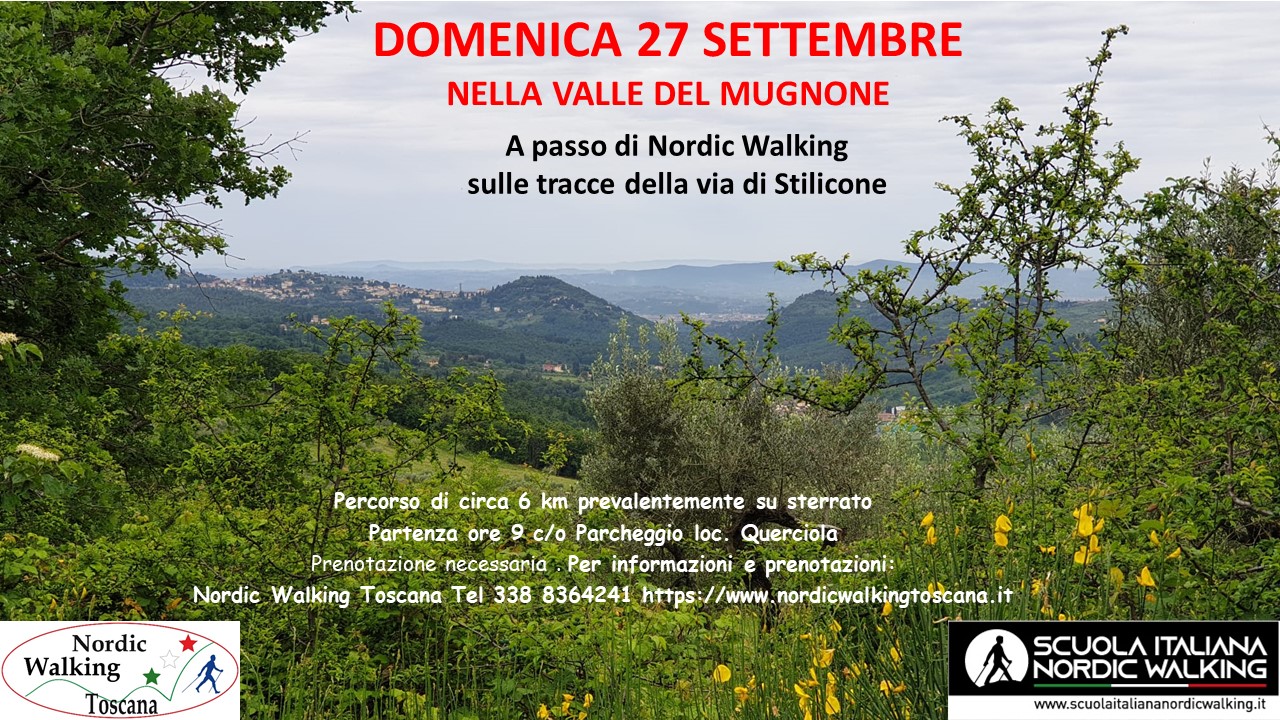Domenica 27 settembre cammineremo a passo di nordic walking su un percorso sterrato che ci permetterà di vedere la Valle del Mugnone da entrambi i lati percorrendo antiche vie di comunicazione e una parte del Sentiero di Stilicone , che congiunge Olmo a Fiesole a metà delle colline.