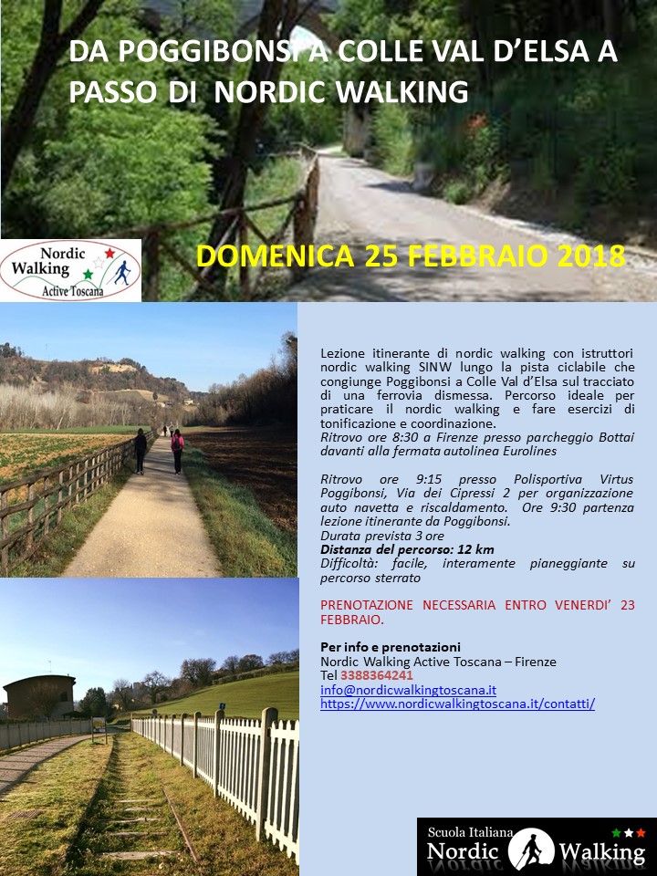 Lezione itinerante lungo la ciclabile che collega Poggibonsi a Colle Val d’Elsa. Lunghezza 6 o 12 km sterrato facile