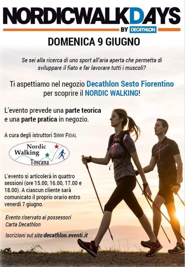 Nel pomeriggio di domenica 9 giugno 2019 sarà possibile provare il nordic walking e conoscerne le sue basi teoriche presso il negozio Decathlon di Sesto Fiorentino. Evento riservato ai titolari di carta Decathlon. Necessario prenotarsi presso il sito decathlon.eventi.it
