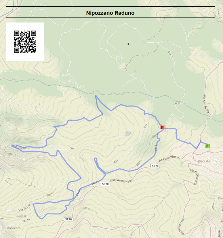 Il tracciato di 10 km partirà dall’Arena estiva di Diacceto per percorrere prevalentemente strade sterrate con dislivelli contenuti che permetteranno di ammirare panorami sia sulla Valle della Sieve che sui vigneti della tenuta di Nipozzano per attraversare il Castello di Nipozzano e tornare al punto di partenza tra boschi e terreni coltivati. Il dislivello é di 212 m.