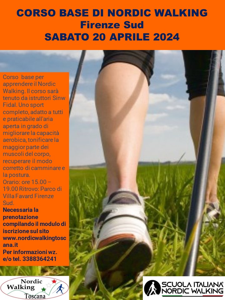 Sabato 20 Aprile 2024 Corso Base di Nordic Walking a Firenze Sud Parco di Villa Favard.