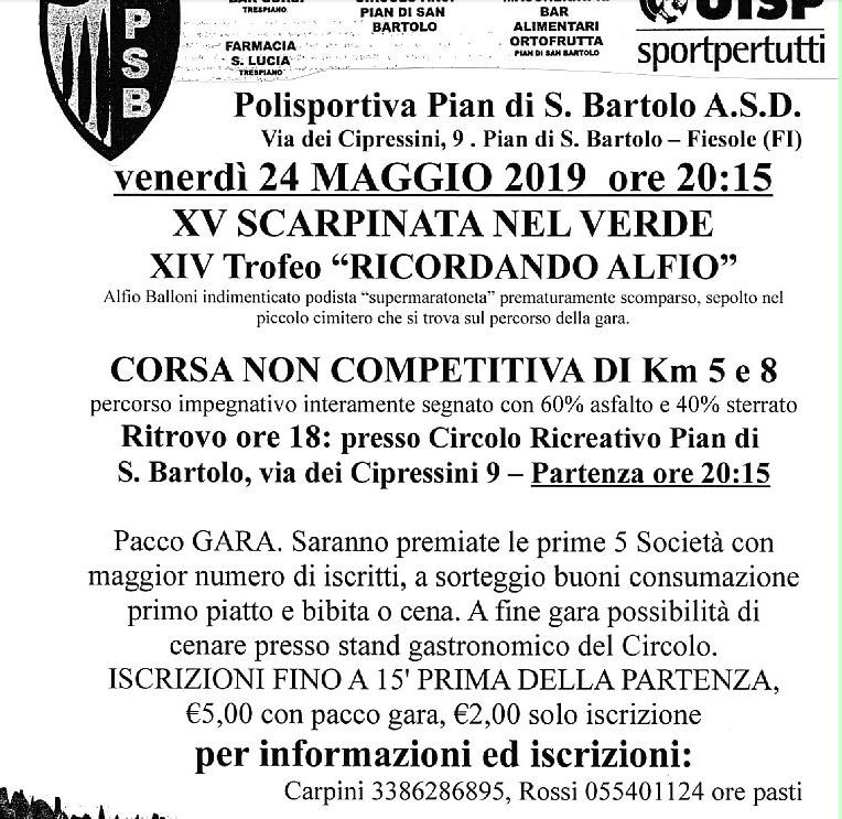 Camminata ludico motoria in occasione della manifestazione sportiva Scarpinata nel verde. Ritrovo presso Circolo ARCi Pian di San Bartolo, Via dei Cipressini Pian di San Bartolo. Iscrizione con pacco gara 5 euro