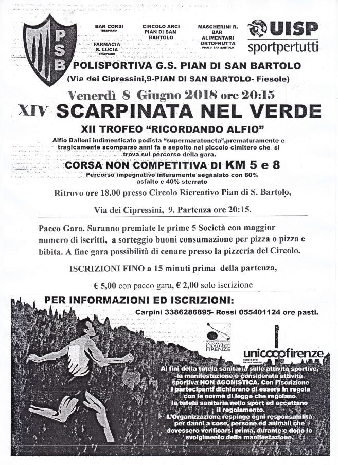 Ci ritroviamo alle ore 19:30 presso il campino del Circolo di Pian di San Bartolo in Via dei Cipressini 9. Ludico motoria 5 km. Per partecipare compilare modulo sottostante aggiungendo luogo e data di nascita