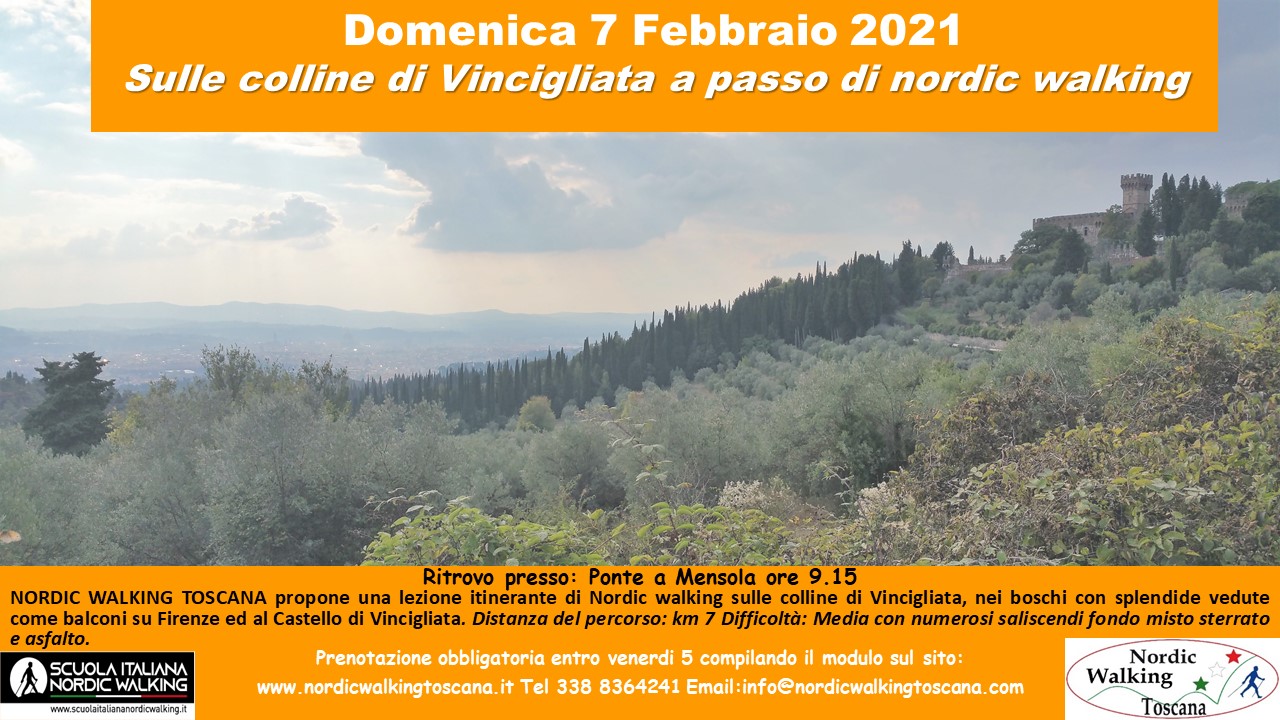 Nordic Walking Toscana propone una lezione itinerante di nordic walking sulle colline di Vincigliata, tra i boschi, con splendide vedute come balconi su Firenze e sul Castello di Vincigliata. Distanza del percorso km 7. Difficoltà media con numerosi saliscendi fondo misto sterrato e asfalto. Per partecipare é necessario compilare il modulo sottostante entro venerdì 5 febbraio indicando nordic walking a Vincigliata